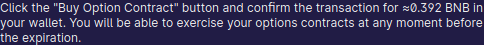 Review the cost of the option represented in BNB (the amount of BNB you need to have in your wallet).